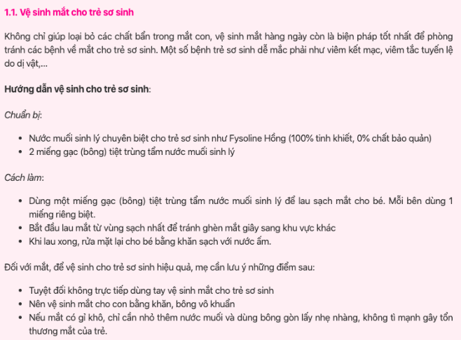 Ví dụ: một khách hàng của SEONGON có thể đăng về cách vệ sinh mắt cho trẻ sơ sinh như sau: